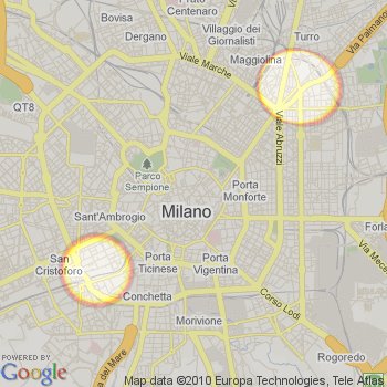 Done? ok… so now that you have your 4sq account and that you started checking in, you can appreciate better what weredoyougo is about. Here is a map i’ve generated with it: it represents an heatmap of Milan with my checkins overlayed to it. When you give your login to wheregoyougo it will fatch your public checkings (the ones that appear in your 4sq profile page) and use geo-location to overlay their number on the map of the selected area. Pretty cool isn’t it? 🙂